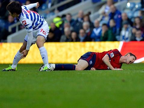 A 33 éves játékos a West Bromwich szombati, a Queens Park Rangers elleni FA Kupa-mérkőzésén kapott rúgást, le is kellett cserélni.